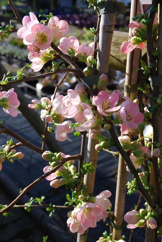 Aber nicht nur durch die sehr frühe und üppige Blüte, sondern auch durch eine quittenähnliche Frucht, die von August bis zum ersten Frost an der Pflanze bleibt, ist die Zierquitte ein wertvoller Kleinstrauch.