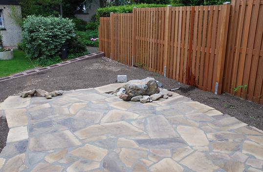Eine sehr schöne Terrasse mit einem nicht alltäglichem Plattenbelag entstand in Velbert Langenberg.