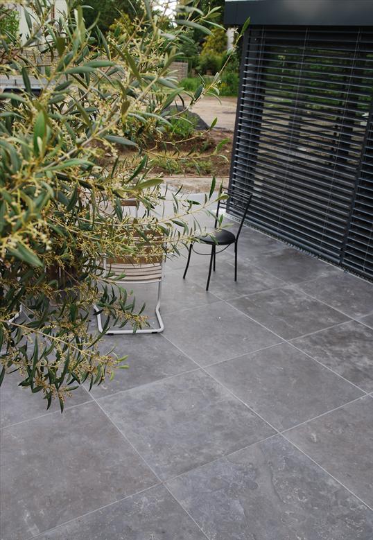 Die geschliffenen Platten sind 3 cm stark und haben alle Vorzüge einer Naturstein Terrasse.