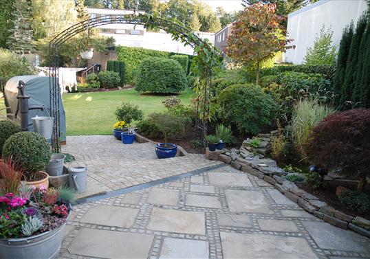 Eine schöne Anlage aus heimischem Material, die wunderbar an das Wohnhaus angepasst wurde und sich harmonisch in das Gesamtbild einfügt.