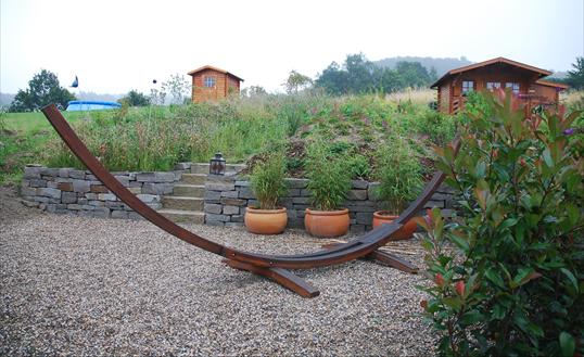 Eine große Hängematte und mehrere Pflanzkübel sowie die entsprechende Pflanzung runden das Bild ab und man kann es kaum erwarten, dass der lange Winter endlich vorbei ist.