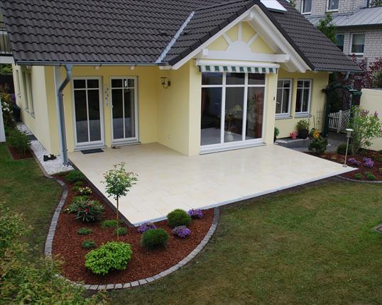 Eine "Sonnenterrasse" aus Rinnero Platten in Korn-Gelb mit struktuierter Oberfläche wurde vor kurzem von uns in Velbert fertiggestellt.