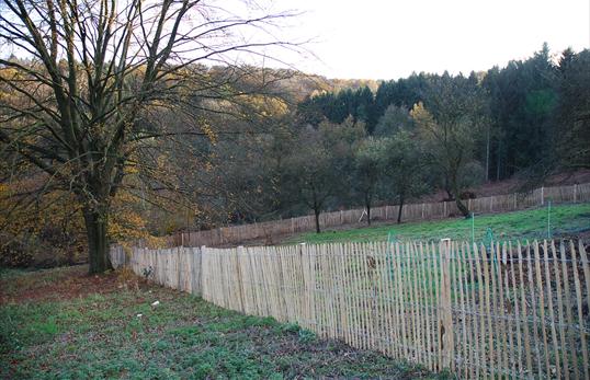 Die Kastanienpfosten sind rund und für das Eintreiben in den Boden an der Unterseite angespitzt.