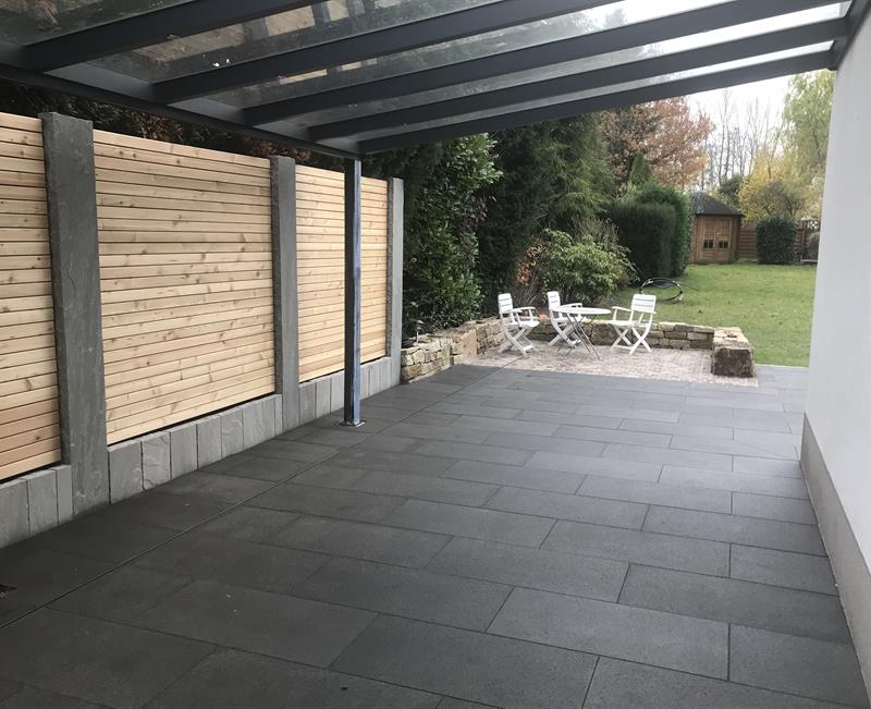 Vor kurzem stellten wir diese tolle Terrasse aus großformatigen Natursteinplatten in Ratingen fertig.